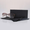 Narrow square metal model in gold. Metal temples with logo patch.